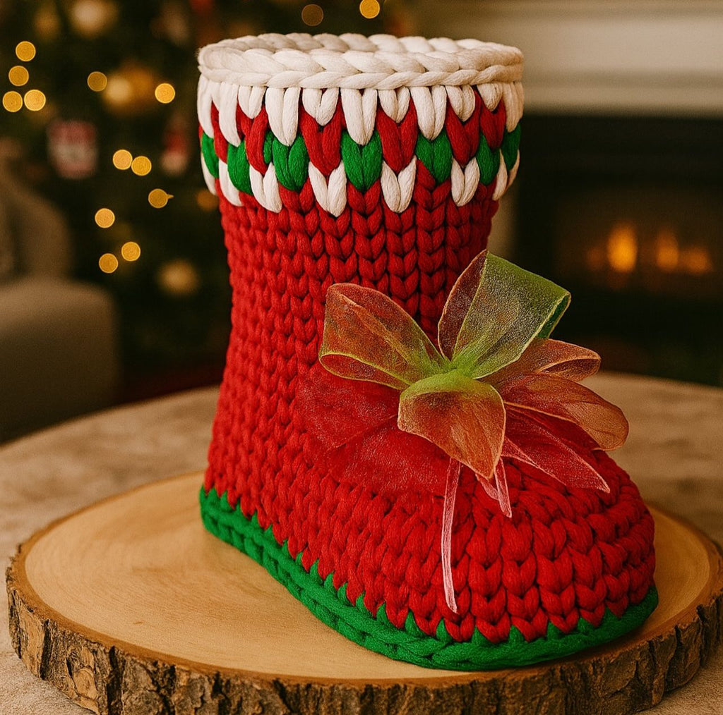 Bota Natalina em crochê – 20cm de puro encanto artesanal! ✨🎅