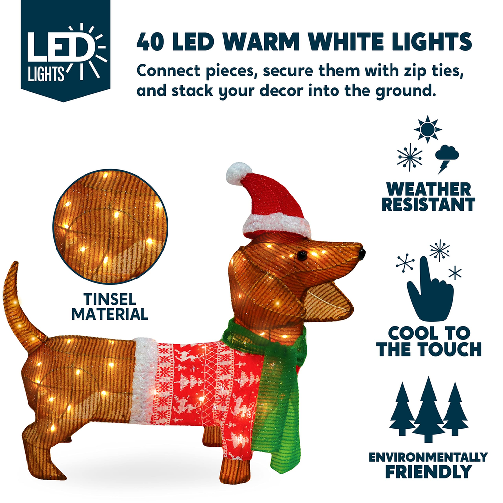 Transforme sua decoração de Natal com a Luz de Jardim LED 2ft - Cachorro Salsicha de Tinsel, uma peça que combina qualidade, design e funcionalidade, tornando suas festas ainda mais especiais e encantadoras.