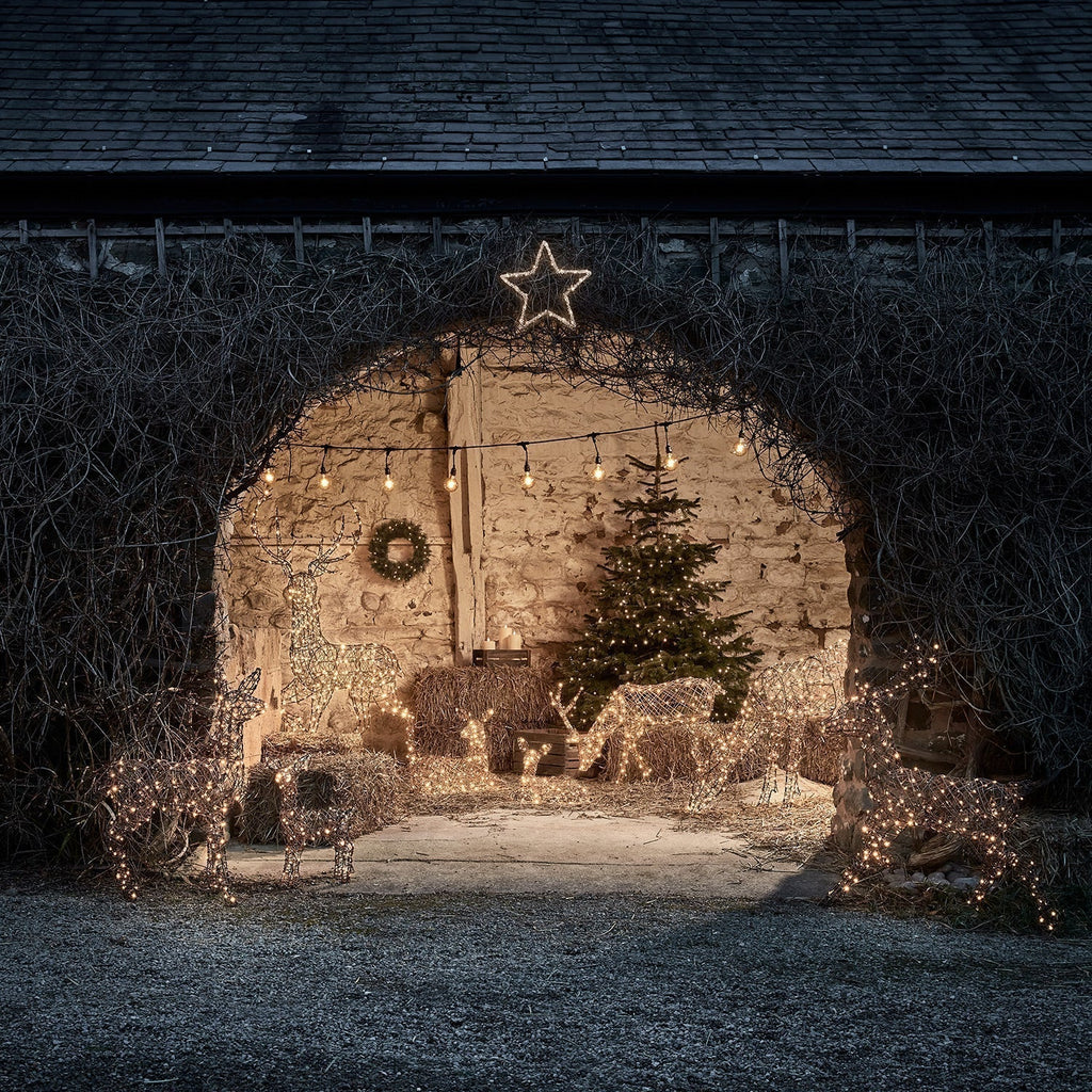 Traga a magia do Natal para sua casa e transforme seu jardim em um deslumbrante cenário invernal com nosso conjunto de 8 renas Studley. Perfeito para grandes espaços ou eventos, este conjunto apresenta 8 renas iluminadas em alturas variáveis de 36 cm a 2 metros, garantindo um brilho sazonal cativante para um Natal inesquecível.