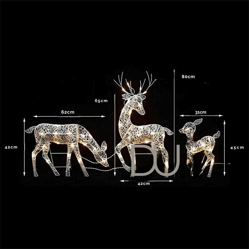Visualize o brilho encantador da nossa Família de Renas Iluminadas, destacando-se em seu quintal ou iluminando a sala de estar. Crie uma atmosfera mágica que será apreciada por amigos, familiares e vizinhos.