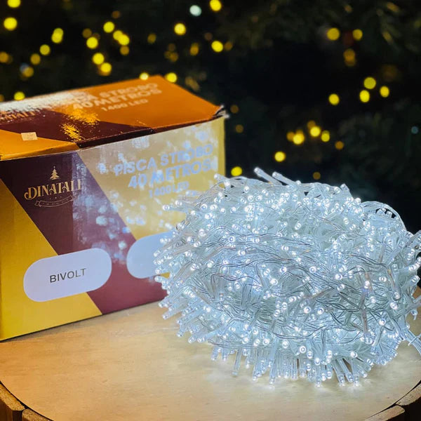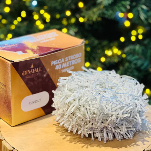 Pisca Estrobo 40 Metros - 1400 LEDs Fio Transparente Branco Frio – Externo (Bivolt)