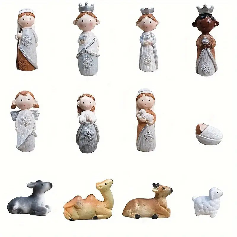 Presépio 12 Peças de Cena de Natal - Resina Estilo Bohemian
