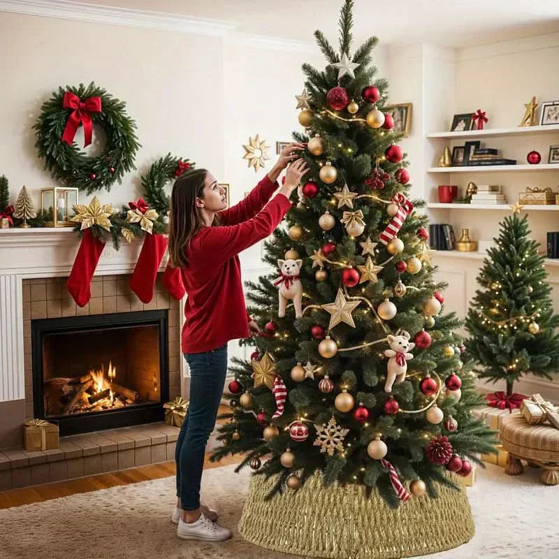5. Facilidade na Montagem: Muitas saias são projetadas para serem colocadas e retiradas facilmente, tornando a montagem da árvore um processo sem estresse.